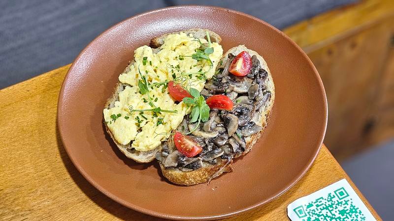 Scrambled Eggs & Toast with Sautéed Mushrooms